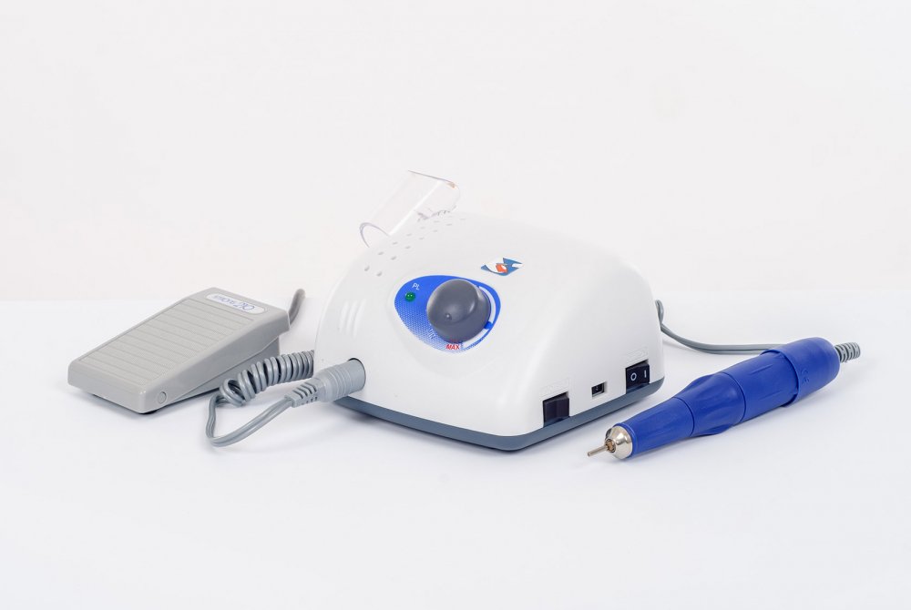 Комплект может поставляться вместе с ножной педалью: либо для вкл/выкл ручки, либо для регулировки скорости вращения фрезы. Первая педаль дает возможность быстро выключать ручку, если это необходимо, а вторая позволяет плавно регулировать обороты фрезы путем разной силы нажатия на педаль.