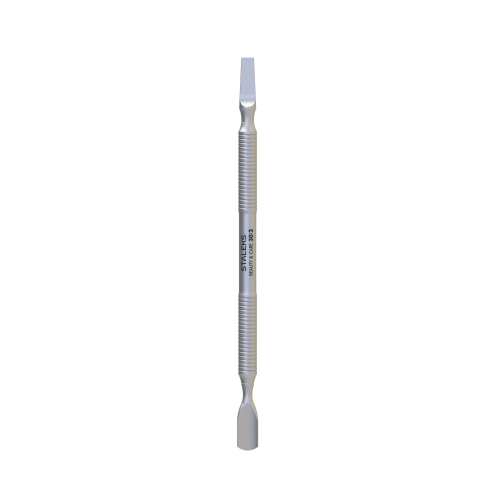 Лопатка для маникюра пушер и лопасть STALEKS BEAUTY and CARE 30 TYPE 2 разработана с учетом потребностей мастеров. Инструмент объединяет функциональные зоны: с одной стороны расположена лопатка закругленная узкая, предназначенная для поднятия и отодвигания кутикулы. Ее размер комфортный при обработке небольших ногтевых пластин. С другой стороны размещена рабочая часть лопасть прямая, которая применяется работе с грубой наросшей кутикулой. Качественная ручная двусторонняя заточка способствует тому, что инструмент легко справляется с плотной кожицей, не повреждая структуру ногтя.