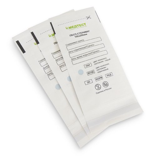 ПАКЕТЫ ДЛЯ СТЕРИЛИЗАЦИИ "МЕДТЕСТ" ИЗ БЕЛОЙ ВЛАГОСТОЙКОЙ БУМАГИ 100/200-ПБСП