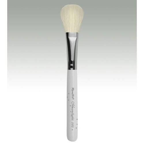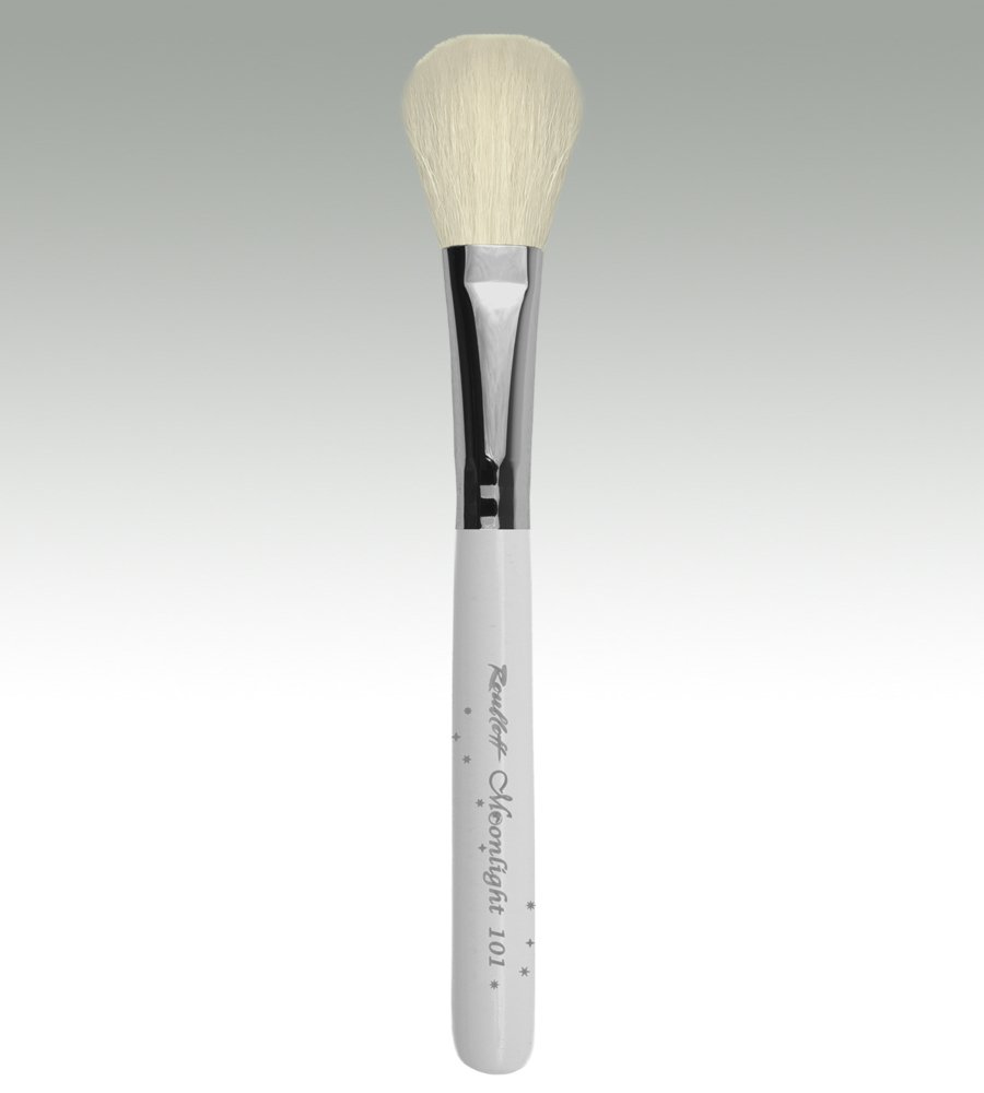 Круглая кисть для макияжа Roubloff Moonlight 101 овальной формы создана для работы с сыпучими текстурами хайлайтера, пудры и румян.