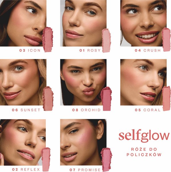 Румяна Selfglow универсальны и просты в использовании, они позволяют создавать как нежный, так и яркий макияж. Экспериментируйте с цветами и техниками, чтобы выразить свою креативность и индивидуальность!