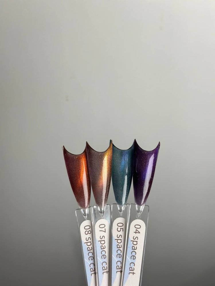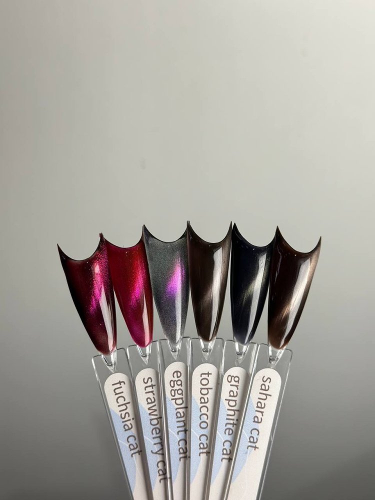 Gelix Nails предлагает целую линейку гель-лаков с эффектом «кошачий глаз», которая позволяет создавать загадочные и мерцающие маникюры. Эти продукты сочетают в себе насыщенные оттенки и металлические частицы, которые под воздействием магнита образуют переливы и блики, напоминающие кошачий глаз.