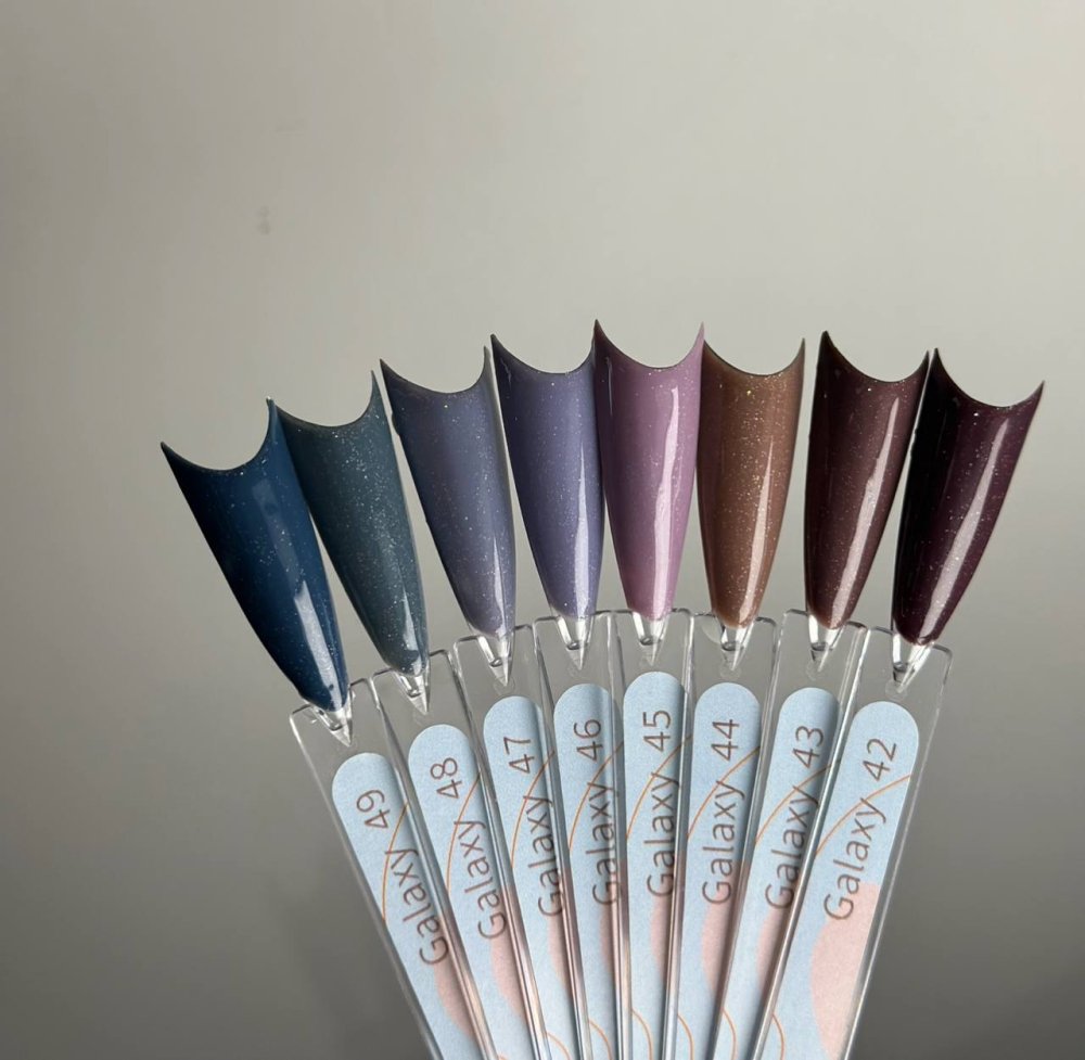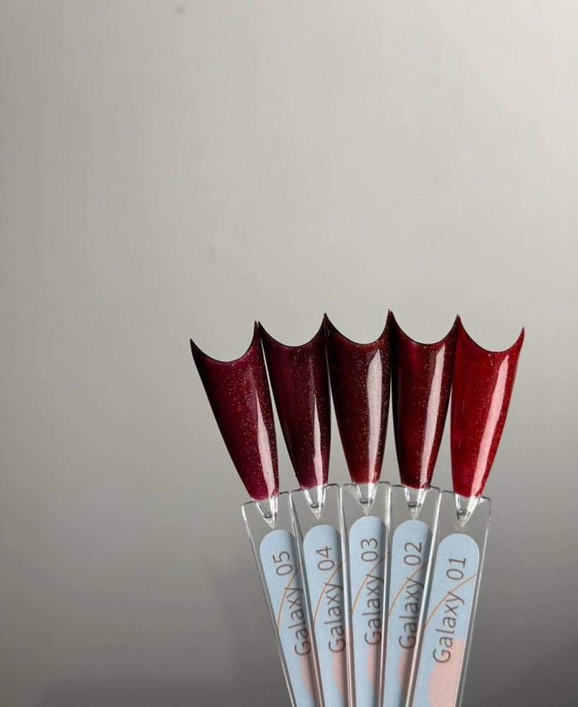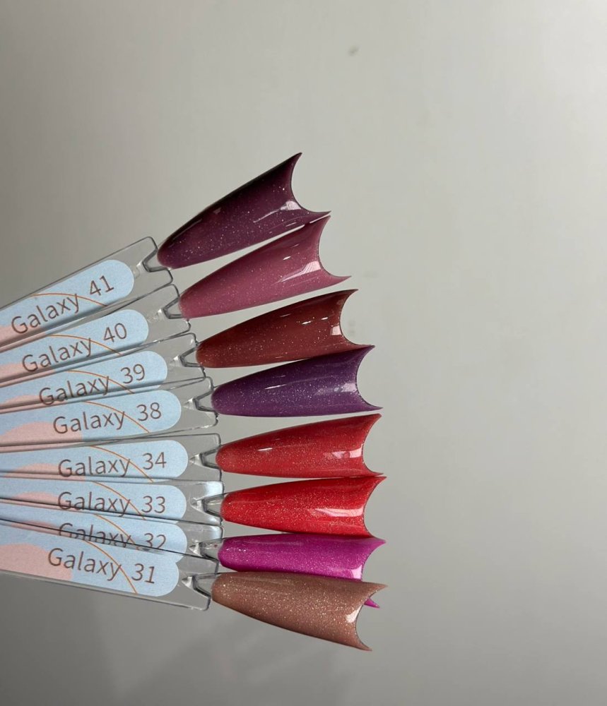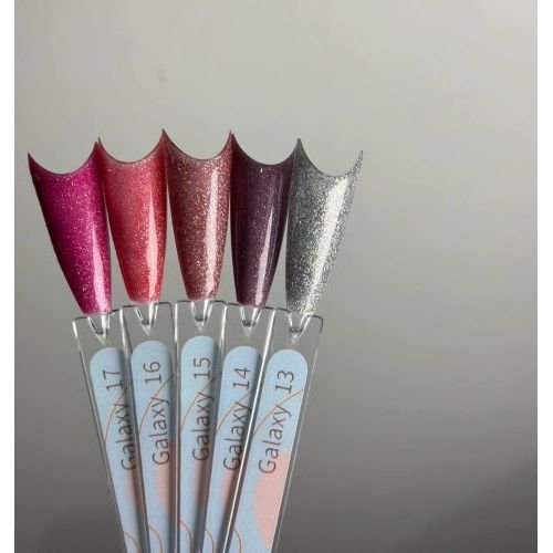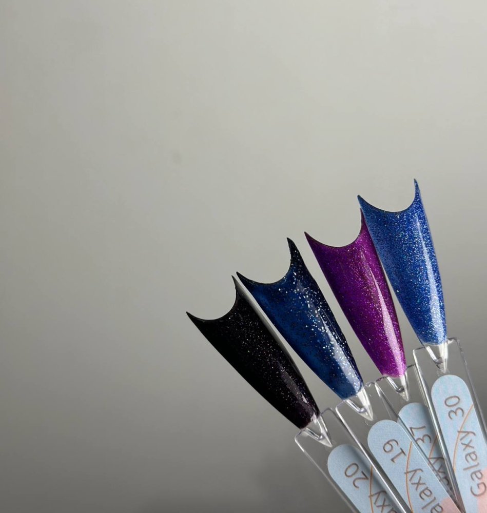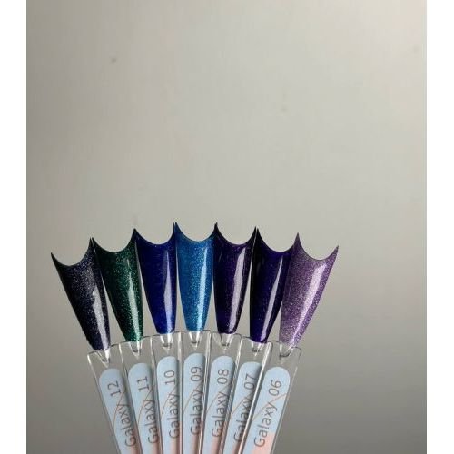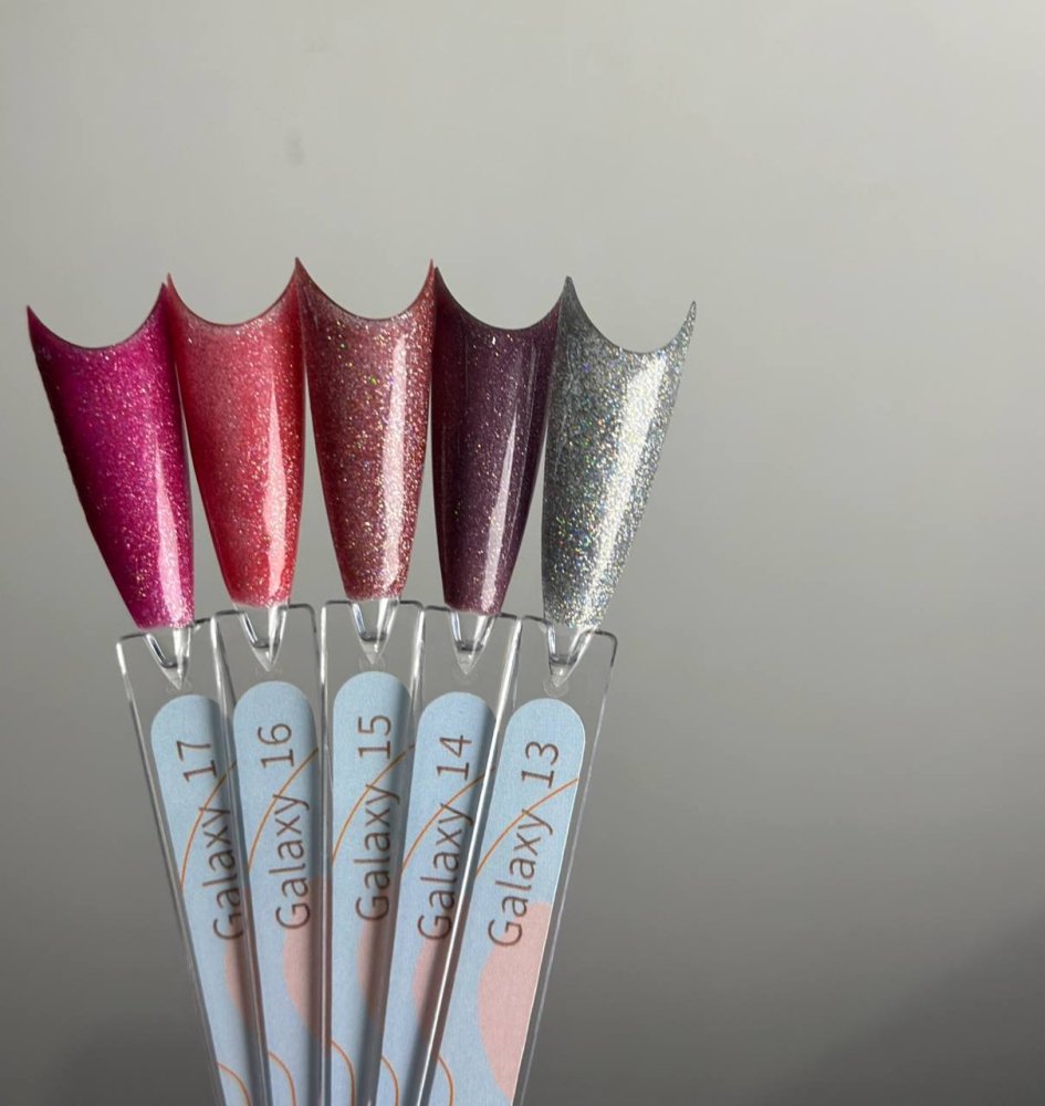 Гель-лаки GALAXY с глиттерами и блёстками — это продукты для маникюра, которые создают эффект сияния и переливов, напоминающий космическое пространство. Они содержат светоотражающие частицы, голографические элементы или мерцающие блёстки, что позволяет создавать яркие и эффектные дизайны