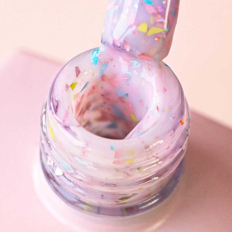 - Нанесите выравнивающий слой DNKa Cover Base и повторите прошлый пункт – сушка под LED и гибридной лампой 60 секунд или 2 минуты под UV.