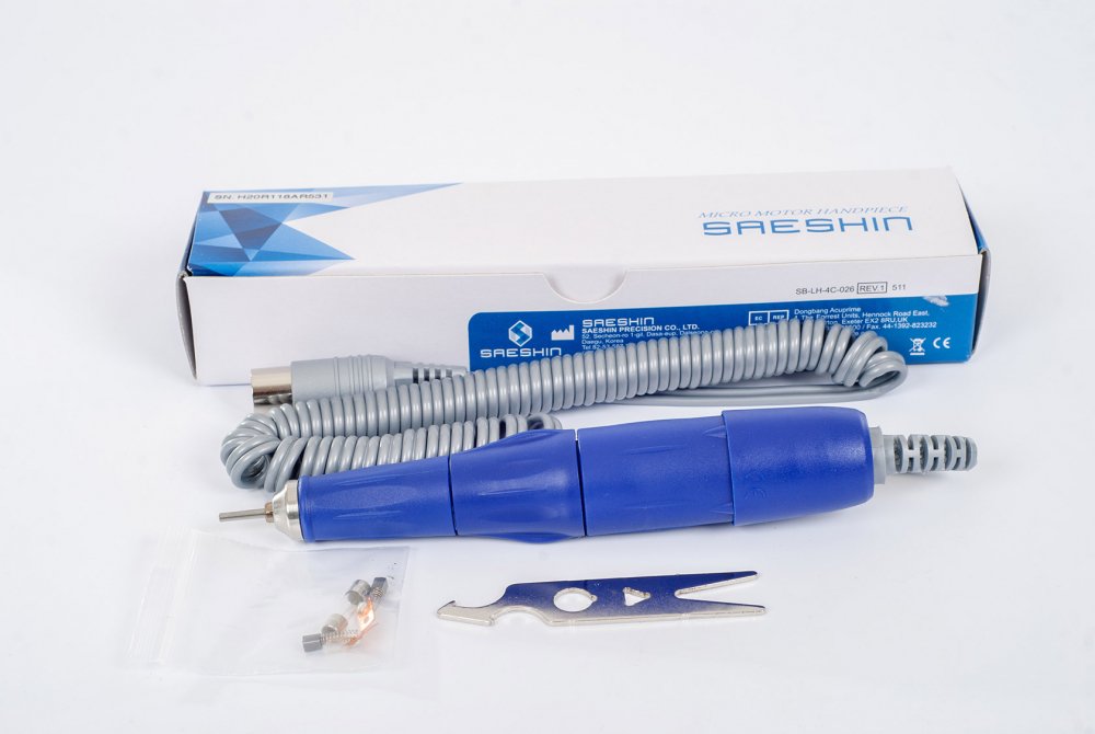 Комплект может поставляться вместе с ножной педалью: либо для вкл/выкл ручки, либо для регулировки скорости вращения фрезы. Первая педаль дает возможность быстро выключать ручку, если это необходимо, а вторая позволяет плавно регулировать обороты фрезы путем разной силы нажатия на педаль.