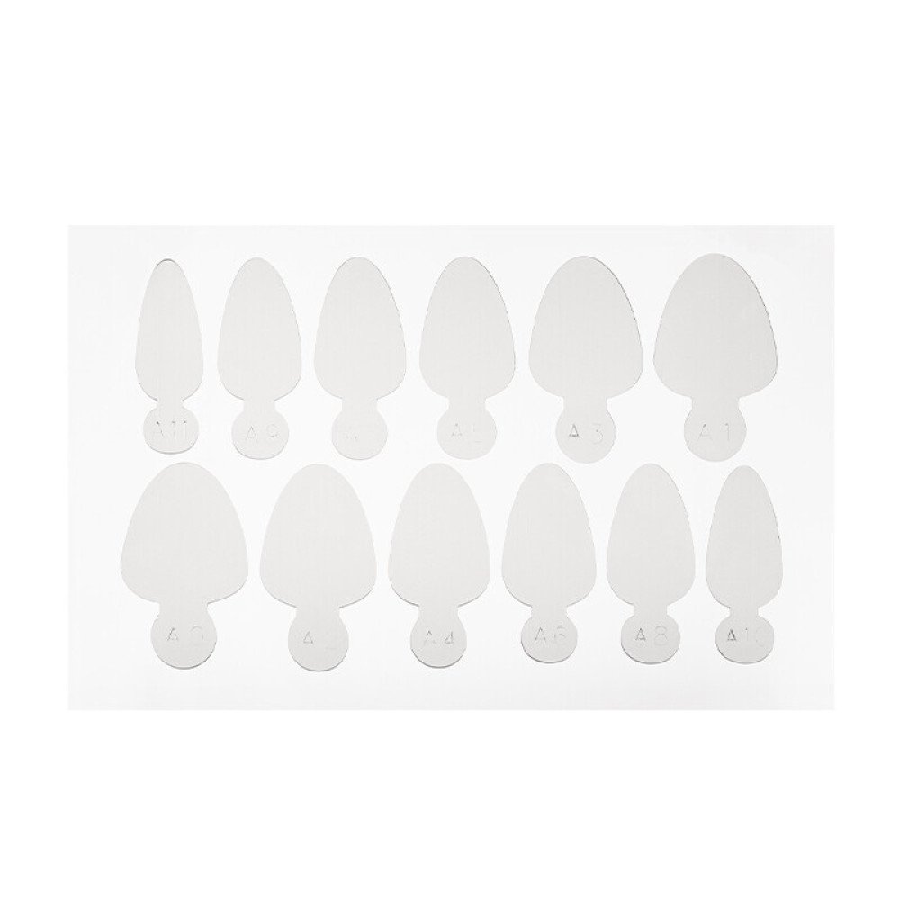 - Возможность подобрать форму и размер под любой ноготь. В наборе находятся типсы 12 разных размеров с соответствующей маркировкой, что экономит время на подбор и поиск нужного варианта.