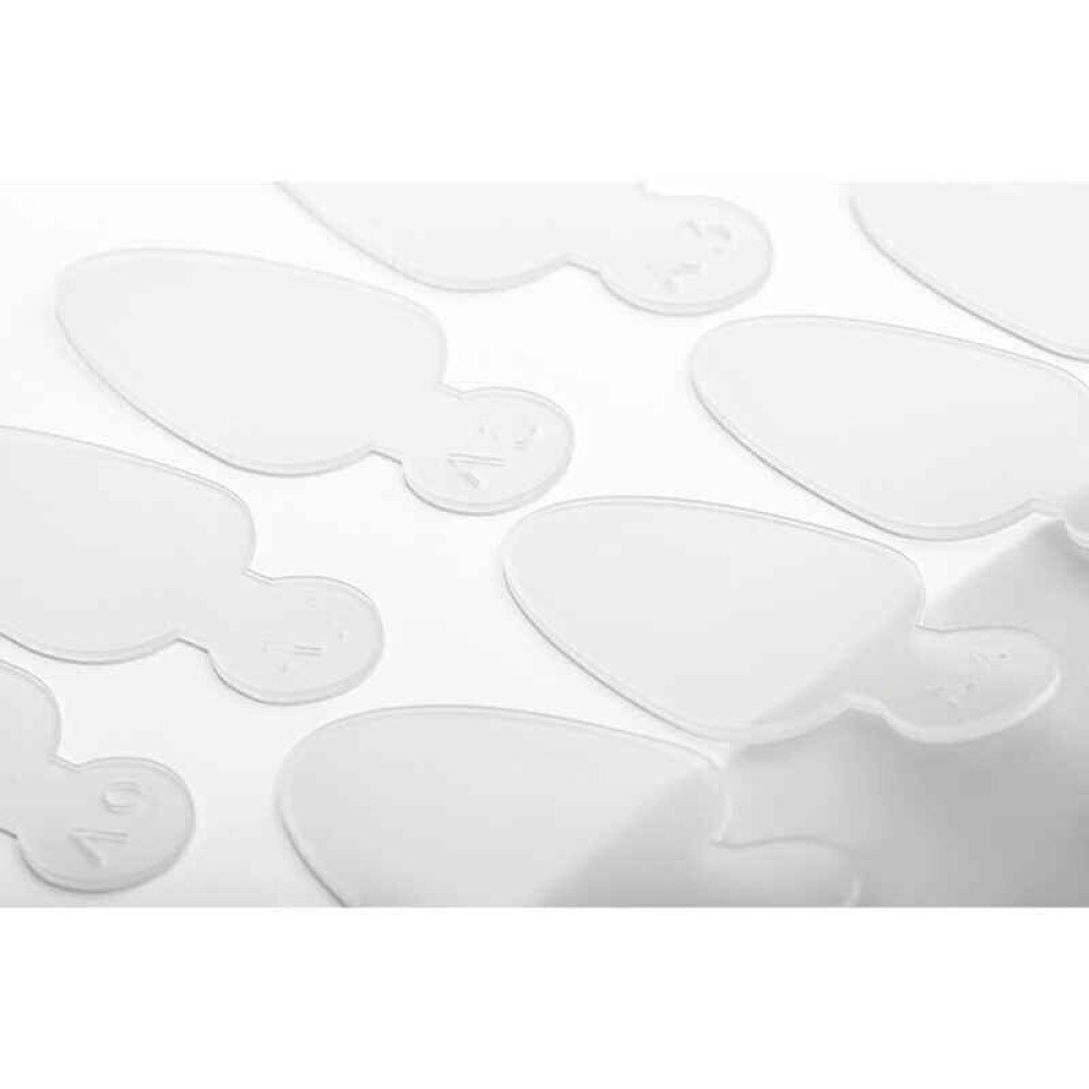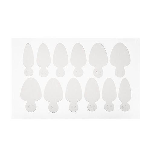 - Удобный вариант для начинающих мастеров. Благодаря разметке можно держать под контролем длину и форму свободного края ногтевых пластин при моделировании. Также предусмотрена зона выкладки ногтевого ложа.