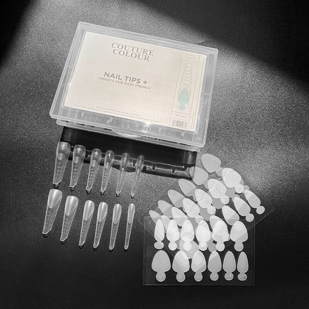 Верхние формы для френч-наращивания COUTURE Colour Nail Tips с силиконовыми вкладками Inserts for Easy French 120 шт