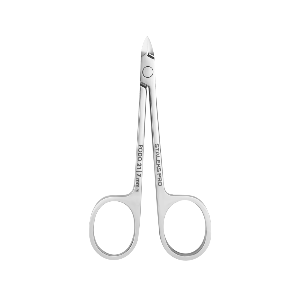 Кусачки Staleks PRO Podo 21 — удобный инструмент с ручками маникюрных ножниц и режущей кромкой кусачек. Особенности геометрии позволяют держать «Глазки» Podo 21 под комфортным углом и работать предельно осторожно.