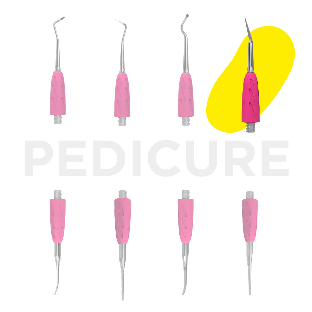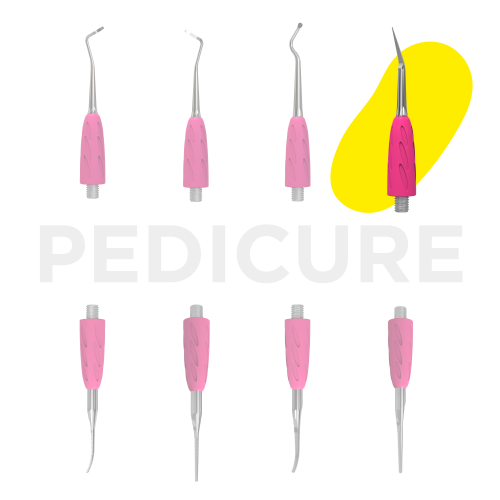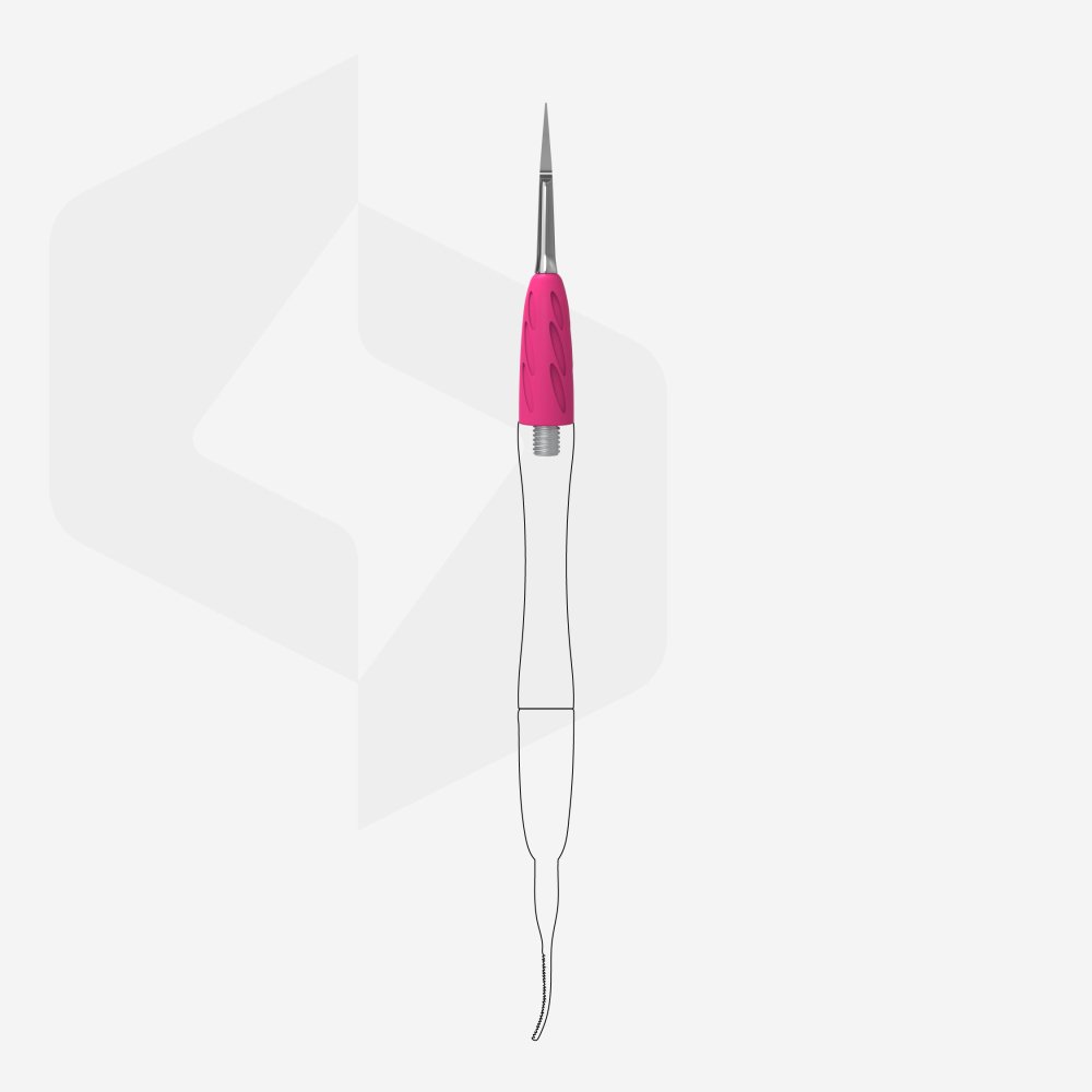 • «пика» изогнутой формы легко очищает зону под ногтем и околоногтевое пространство от различных загрязнений при выполнении педикюра;