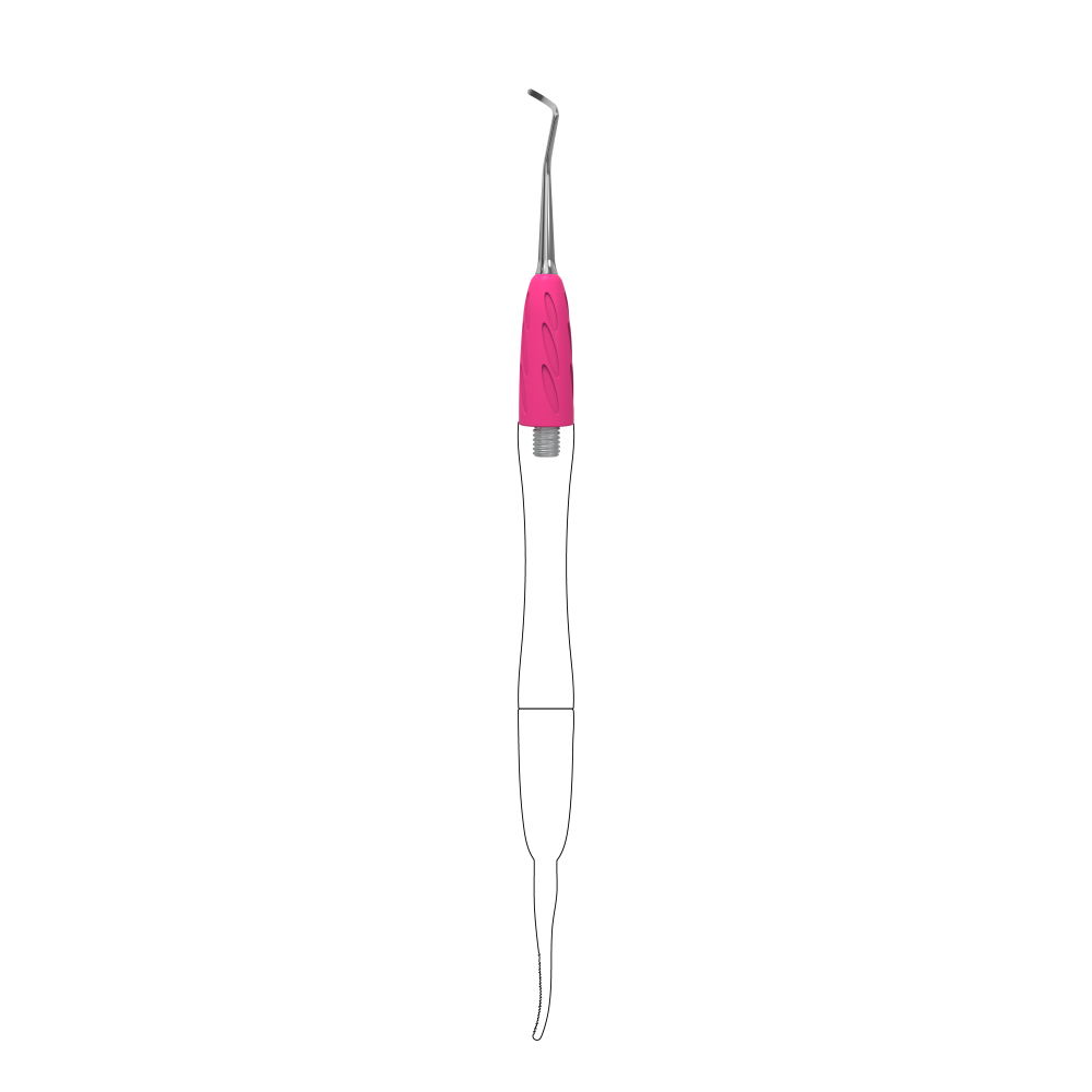 Кюретка Сталекс Про с загибом вправо для сменной части лопатки Combo UNIQ 32 изготовлена из высококачественной нержавеющей стали и силикона. Она заточена вручную, что гарантирует безупречную точность и скорость выполнения процедуры. С обратной стороны расположен резьбовой механизм соединения с ручкой.