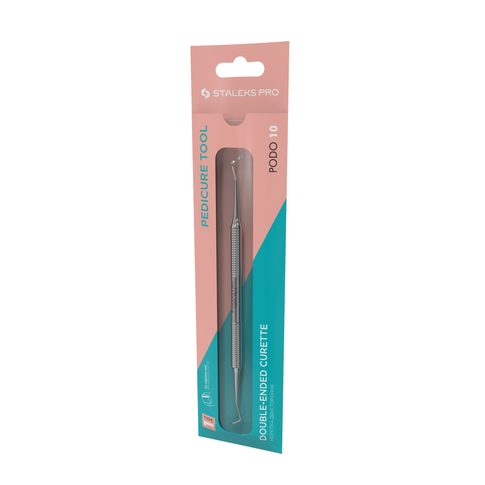 Двусторонняя кюретка для вросшего ногтя STALEKS PRO PODO 10 TYPE 1 — востребованный инструмент среди подологов и мастеров ногтевого сервиса. Разработана для безопасной и эффективной коррекции вросших ногтей, чтобы предотвратить развитие онихокриптоза. Благодаря анатомически продуманному изгибу рабочей части кюретка повторяет форму ногтевой пластины, что облегчает обработку труднодоступных участков.
