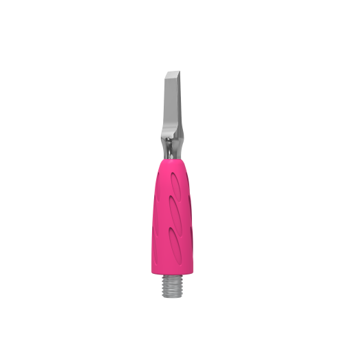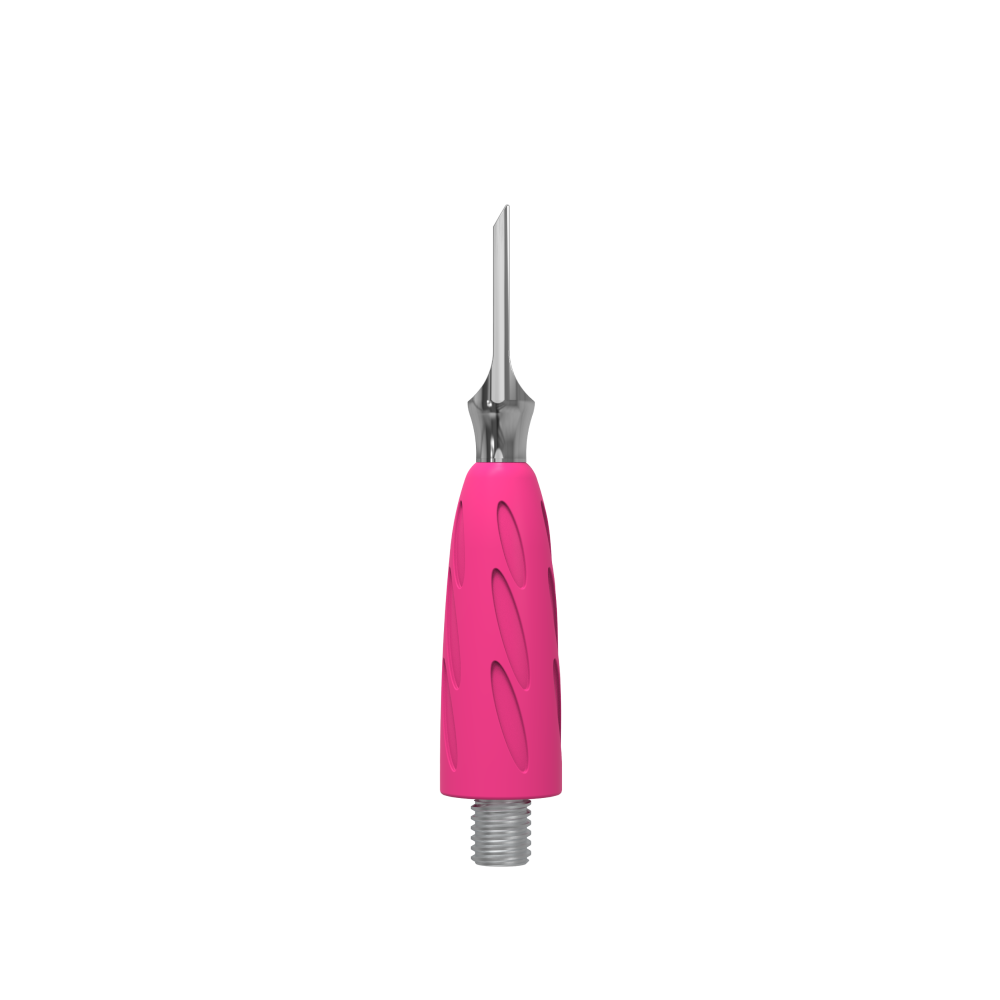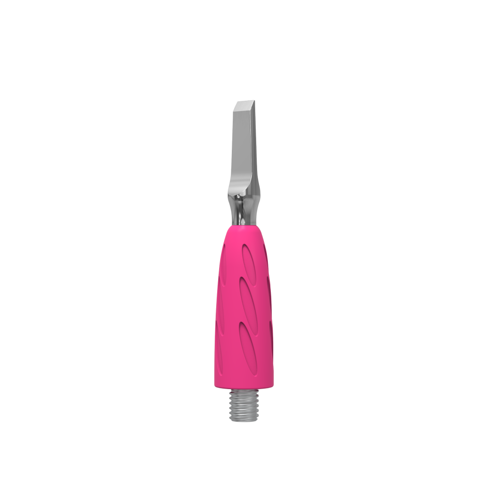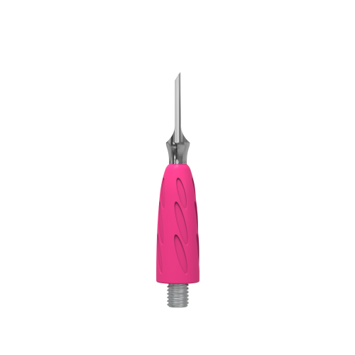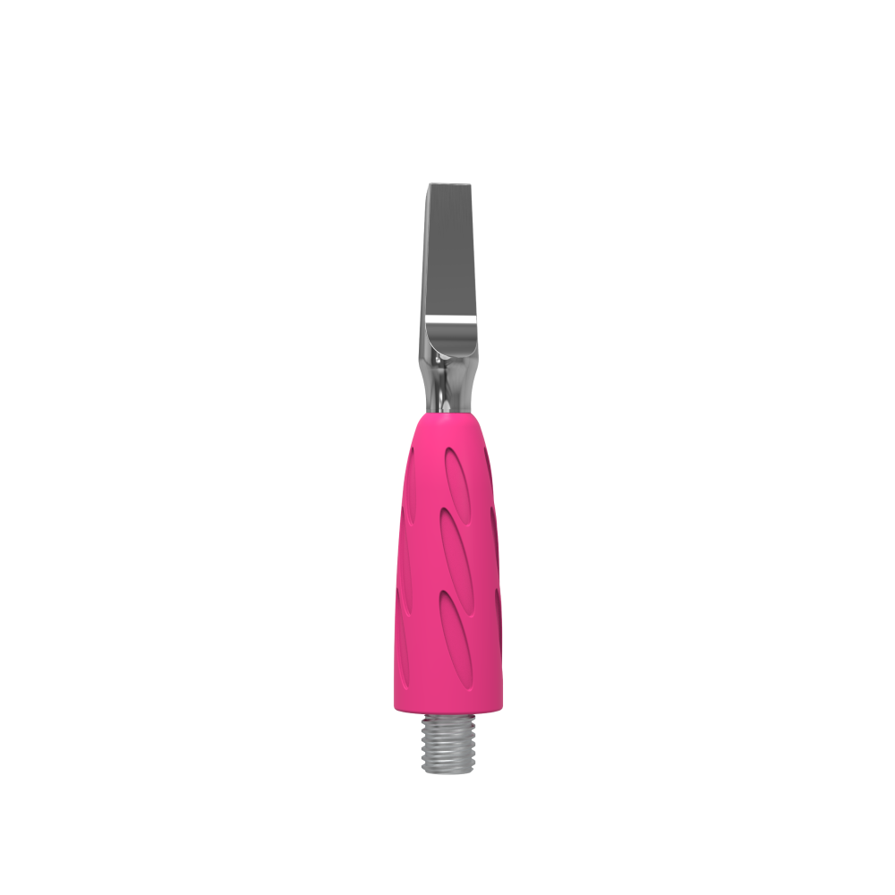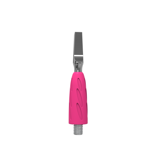 Силикон яркого розового оттенка — гипоаллергенный и приятный на ощупь. Благодаря антискользящему силиконовому покрытию инструмент надежно фиксируется в руке мастера, кисть работает без напряжения и меньше устает.