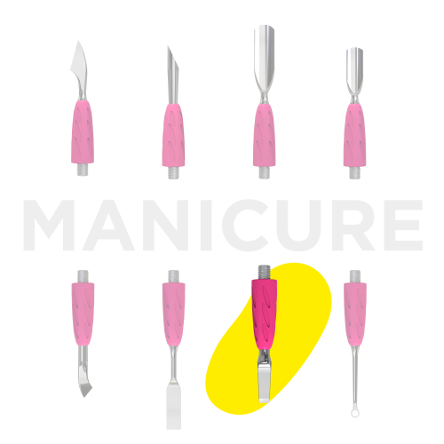 - «лопасть прямая» предназначена для обработки синусов, поднятия грубой и сильно залипшей кутикулы при выполнении маникюра и педикюра;