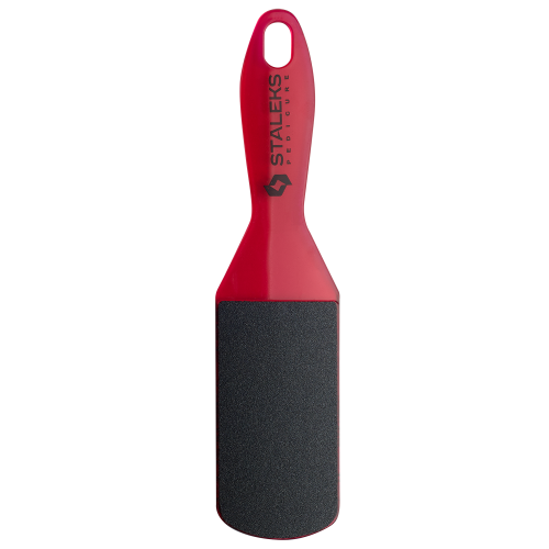 Терка для стоп STALEKS PRO EXPERT 10 TYPE 2 80/120 грит AE 10/2 выполнена из качественного пластика с удобной эргономичной ручкой. С разных сторон имеет разную абразивность 80 и 120 грит для разного состояния огрубевшей кожи пяток. Одной стороной можно убрать первый более грубый слой кожи, второй - зашлифовать. Рекомендуется использовать специальное средство для педикюра (ремувер), который смягчает кожу, делая процесс более качественным и легким.