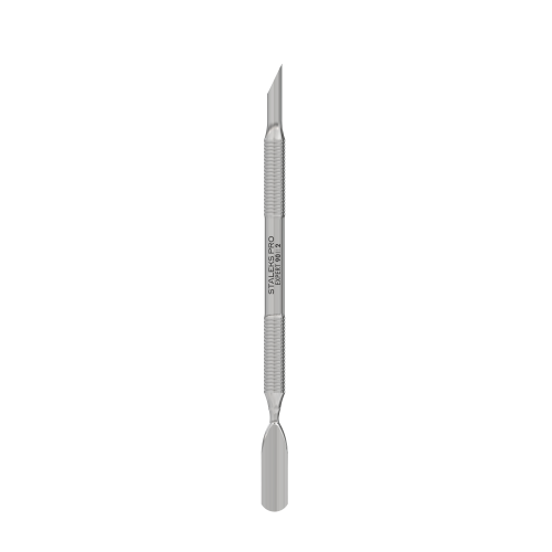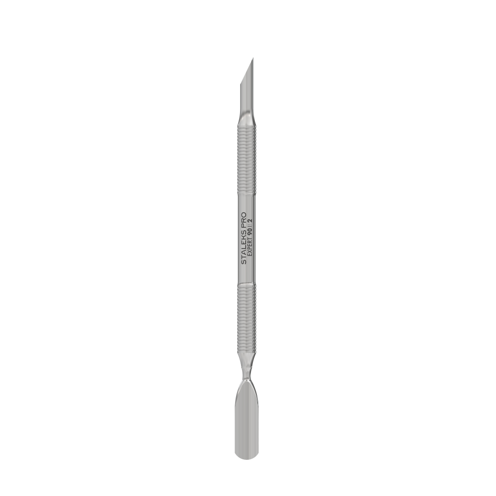 Пушер для маникюра STALEKS PRO EXPERT 90 TYPE 2 разработан с учетом всех потребностей мастеров. Сочетает две функциональные части: с одной стороны — пушер скошенный, в форме апельсиновой палочки, предназначен для поднятия и отодвигания сильно налипшей грубой кутикулы, очистки свободного края ногтя, удаления потеков гель лака. С другой стороны — лопатка скругленная широкая, используется для поднятия и отодвигания кутикулы, удобна в работе с широкой ногтевой пластиной. Рабочая поверхность с отличной ручной заточкой эффективно справляется с плотной кожицей, не повреждая ногтевую пластину.