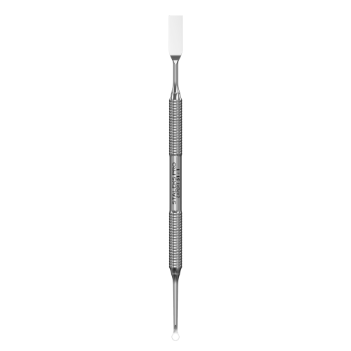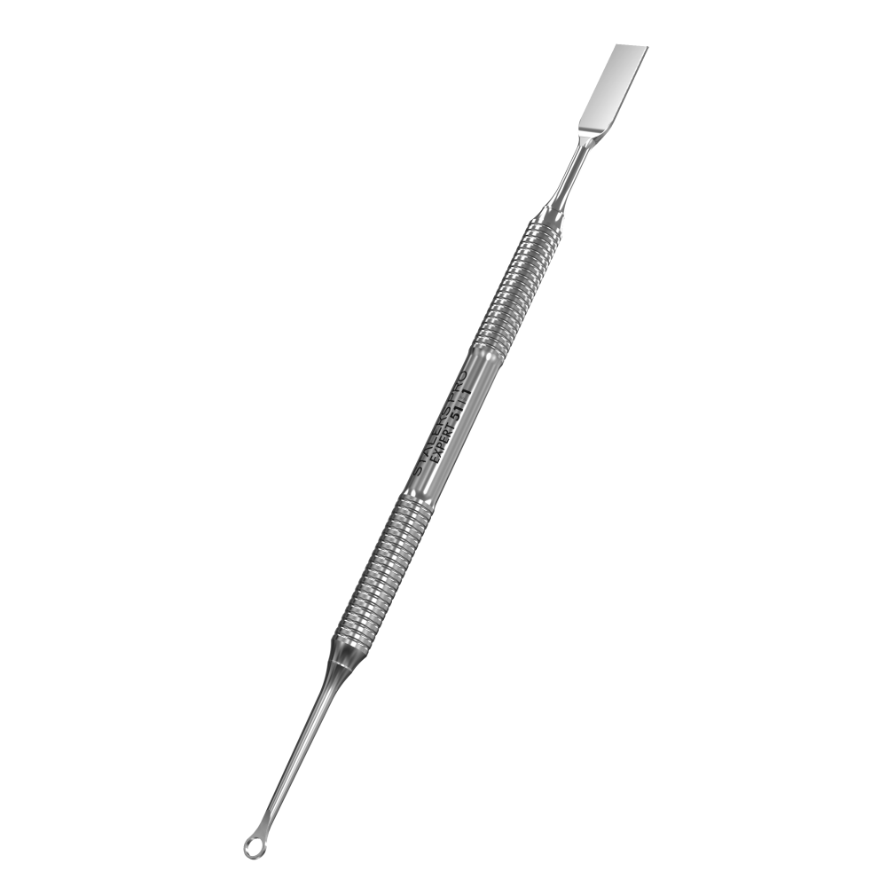 Пушер кольцо лопатка для маникюра STALEKS PRO EXPERT 51 TYPE 1 разработан с учетом всех потребностей мастеров. Он сочетает две функциональные части: с одной стороны — классическая прямоугольная лопатка для работы с кутикулой, с другой — миниатюрное кольцо для безопасного удаления птеригия. Благодаря оптимальной заточке рабочая поверхность эффективно справляется с плотной кожицей, не повреждая ногтевую пластину.