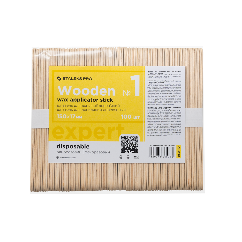 Staleks Pro Expert деревянные шпатели для депиляции DSW-10/5 изготовлены из натуральной древесины (береза). Они гладко зашлифованы — приятны в работе, нежно контактируют с кожей без опасения повредить.