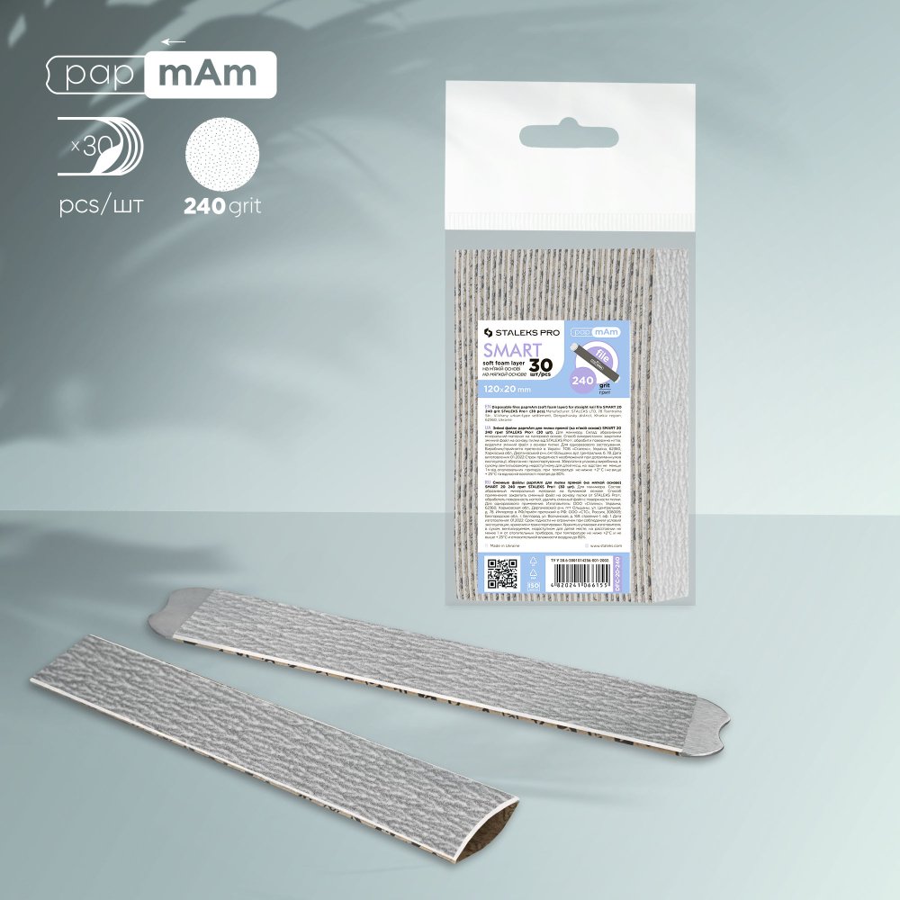 PapmAm STALEKS PRO SMART 22 — практичные сменные файлы для прямой пилки с абразивностью 240 грит. В наборе 50 одноразовых накладок, которые надеваются на основу для каждого нового клиента.