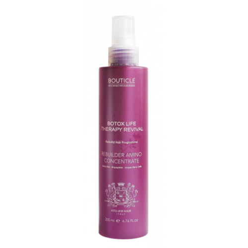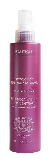 Способ применения: рекомендован к использованию в качестве второго шага BOTOX LIFE THERAPY REVIVAL Rebuild Hair Programme. После использования шампуня Rebuilder Shampoo удалите излишки влаги полотенцем, нанесите Rebuilder Amino Concentrate попрядно, начиная с нижней затылочной зоны (отступая от корней 1.5-3см), равномерно распределите, оставьте на 5-10 минут. Не смывая спрей, нанесите Rebuilder Mask, равномерно распределите по длине. Оставьте на 5-10 минут с использованием дополнительного источника тепла, смойте. Приступите к укладке.